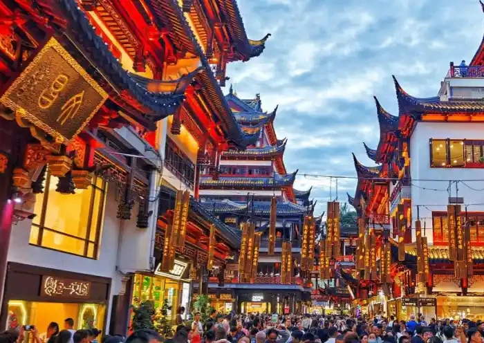 수백 년 된 정원과 전통 시장이 함께 있는 공간으로, 중국 전통 건축과 길거리 음식을 체험할 수 있는 곳입니다.